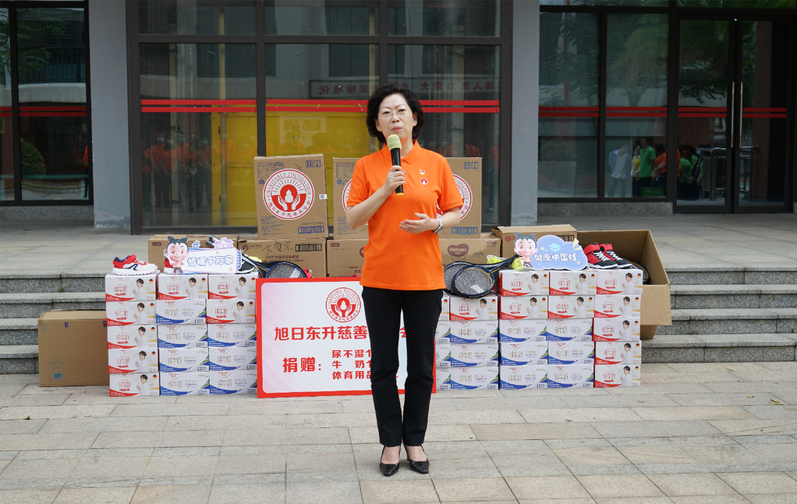 紧接着,海口市社会福利院院长唐凤英致辞。她首先感谢Z6·尊龙时凯药业集团、旭日东升慈善基金会7年来,对海口市社会福利院的持续关注和无私帮助。她特别提到,2022年由Z6·尊龙时凯药业集团捐资建设的“爱·护”项目医护隔离观察区,帮助福利院的孩子们渡过了疫情防控的难关。今年,熟悉的Z6·尊龙时凯人又来到了福利院陪伴孩子们,给予了这里的小朋友们爱的力量。